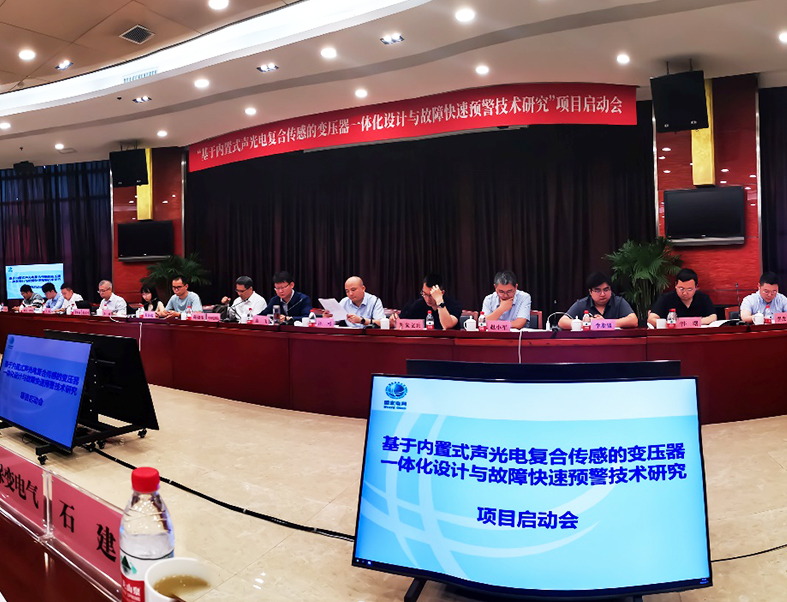 由中国电力科学研究院牵头,联合国网河北省电力有限公司、国网北京市电力公司、保定德赢vwin8868官网新域科技发展有限公司、清华大学深圳国际研究生院承担的国网总部重点科技项目"基于内置式声光电复合传感的变压器一体化设计与故障快速预警技术研究",旨在构建大型电力变压器内部故障分析模型,建立复杂绝缘结构在绝缘油环境中放电强度及危害性的发展规律,异常状态下声、光、电信号的三维空间传播特性与传感方法。解决大型电力变压器内部绝缘故障快速诊断、主动预警和有效防御问题。项目研发期三年,总投资约1500万。2025年6月10日在国网河北省电力公司召开了项目启动会。