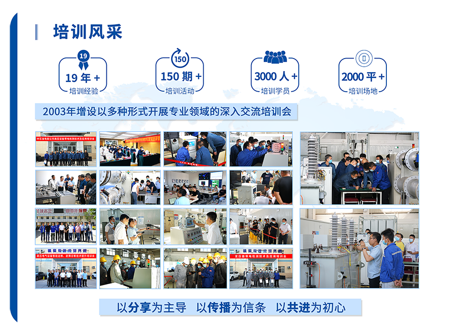 基地拥有多个多媒体培训教室和有着省重实验室支撑的实操实验室。专业理论培训师9人,实际操作培训师8人,能够对大型电力变压器、GIS、开关柜、电缆、敞开式设备等各类高压设备进行专业的带电检测培训,可开展超声波局部放电检测等十余项实训项目,欢迎有需要的各界人士前来参加。