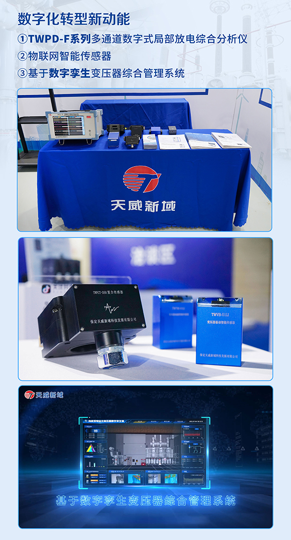 本届论坛,德赢vwin8868官网新域携带公司自主研发的TWPD-F系列多通道数字式局部放电综合分析仪、物联网智能传感器以及基于数字孪生变压器综合管理系统,展现数字化转型新动能,推动我国新型工业化进程,完成电力装备行业质的有效提升和量的合理增长。