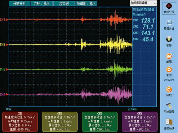 2、录波与回放功能,可以对变压器典型振动信号进行无损波形录制,以备后续的分析;可以对振动信号进行细节回放,从而分析振动信号的细微特性。