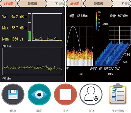 6、具有幅值检测、相位图谱检测、脉冲图谱检测以及波形图谱检测功能,具有PRPD以及PRPS图谱功能。